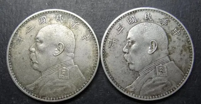 这两枚侧脸头像的就是民国三年袁世凯像壹圆银元,仔细凑近看,头像轮廓硬朗,服装上的袍纹清楚得很,最外头那圈篆体字“中华民国三年”,凑齐了那味道就透出来了,银元一落进手心,厚实分量和圆润边角,小时候总觉得比硬币大不少,偷偷从家里盒子翻出来瞅,怕磕着碰着还要用软布裹着。