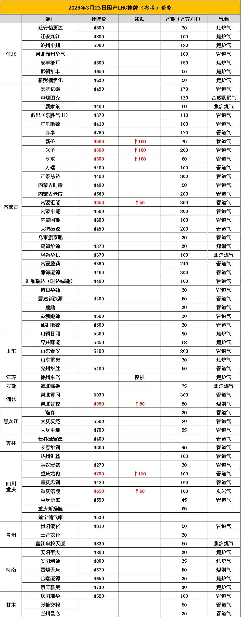 【2026年3月22日价格行情】上游挺价情绪强烈,LNG延续推涨