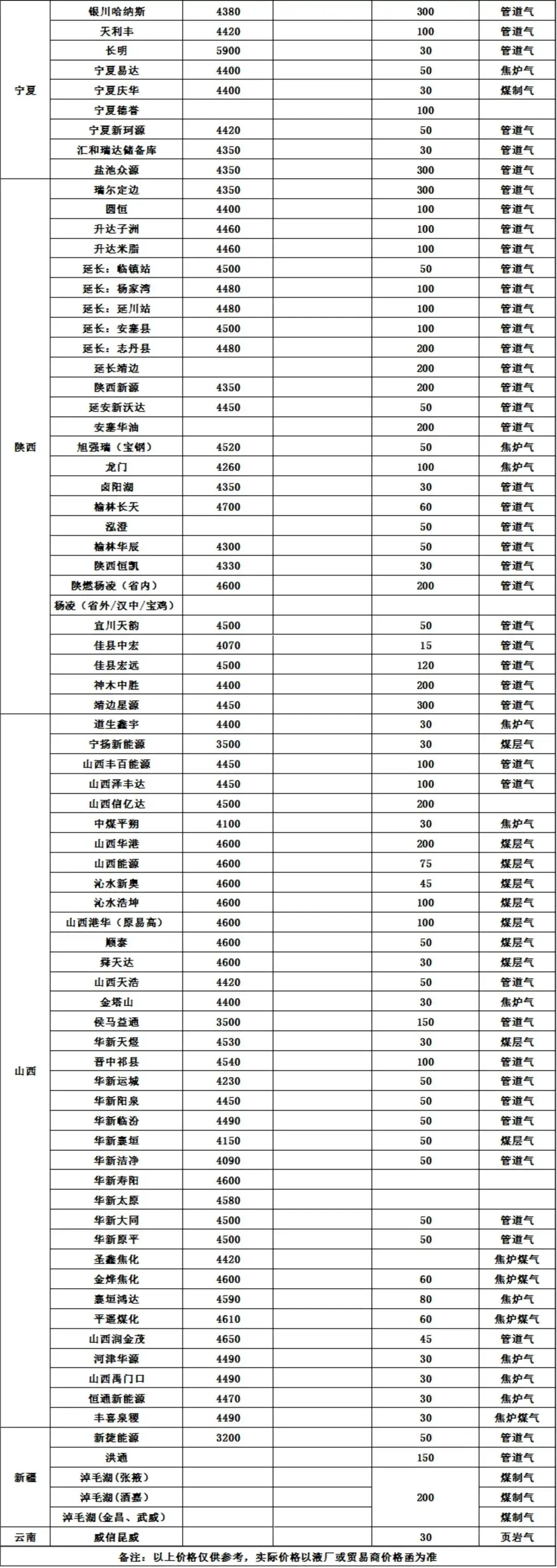 ● 国产LNG液厂价格
