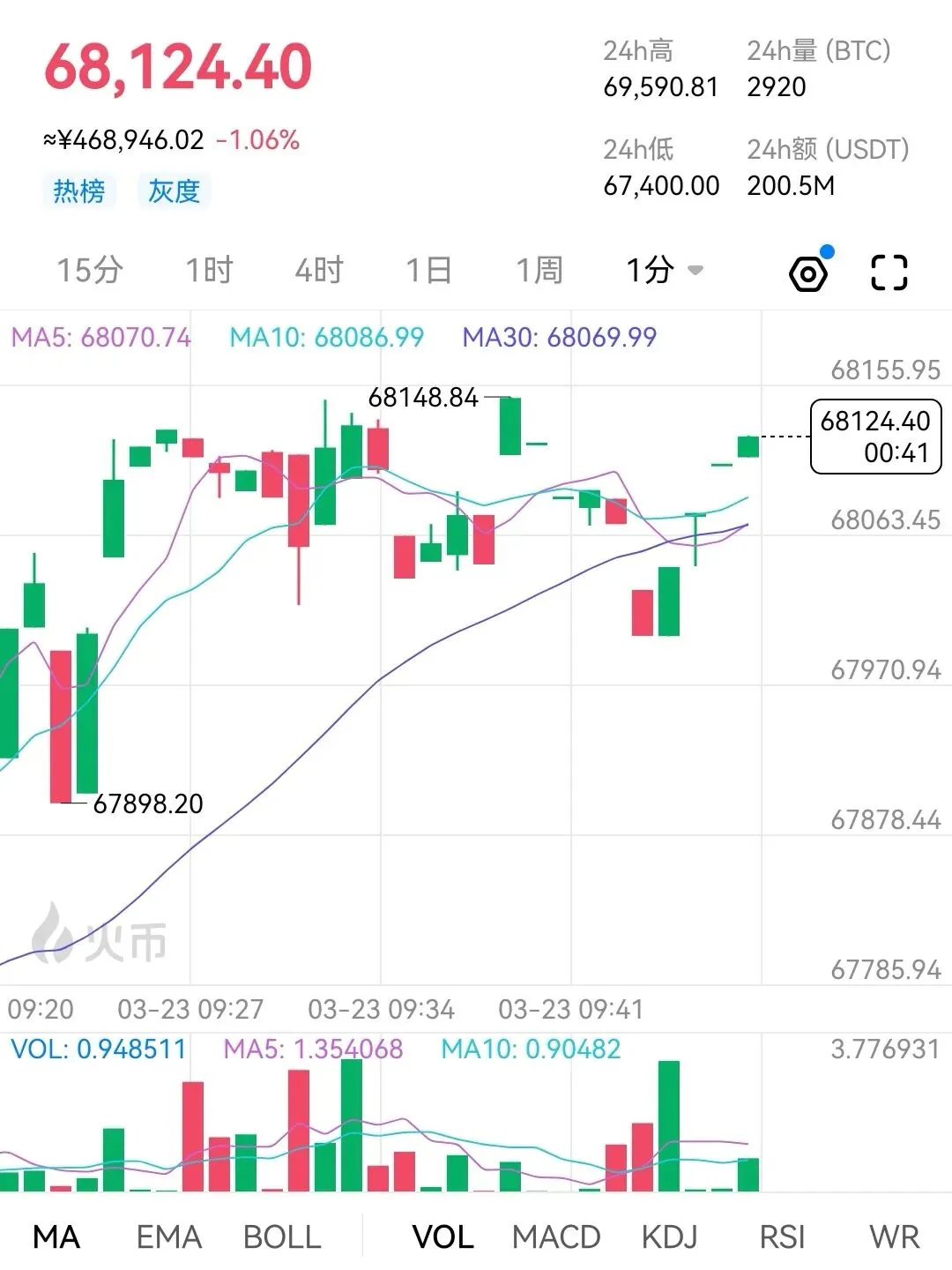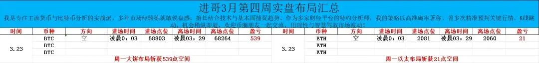 凌晨行情回顾大饼价格围绕于69000附近开始持续走低,最低触及至67300低点后止步反弹。以太同步大饼趋势。目前比价在68000附近窄幅整理。从当前盘面结构来看,四小时级别MACD死叉持续运行于零轴下方,空头动能柱未见明显缩短,下行结构保持完整。KDJ三线低位粘合,但未形成金叉发散,属于弱势修复形态,短期仍有进一步下探的可能。价格持续运行于布林带中轨之下,轨道开口向下,反弹受制于中轨压制,短期趋势依旧偏空操作建议68500附近空,目标67000附近,