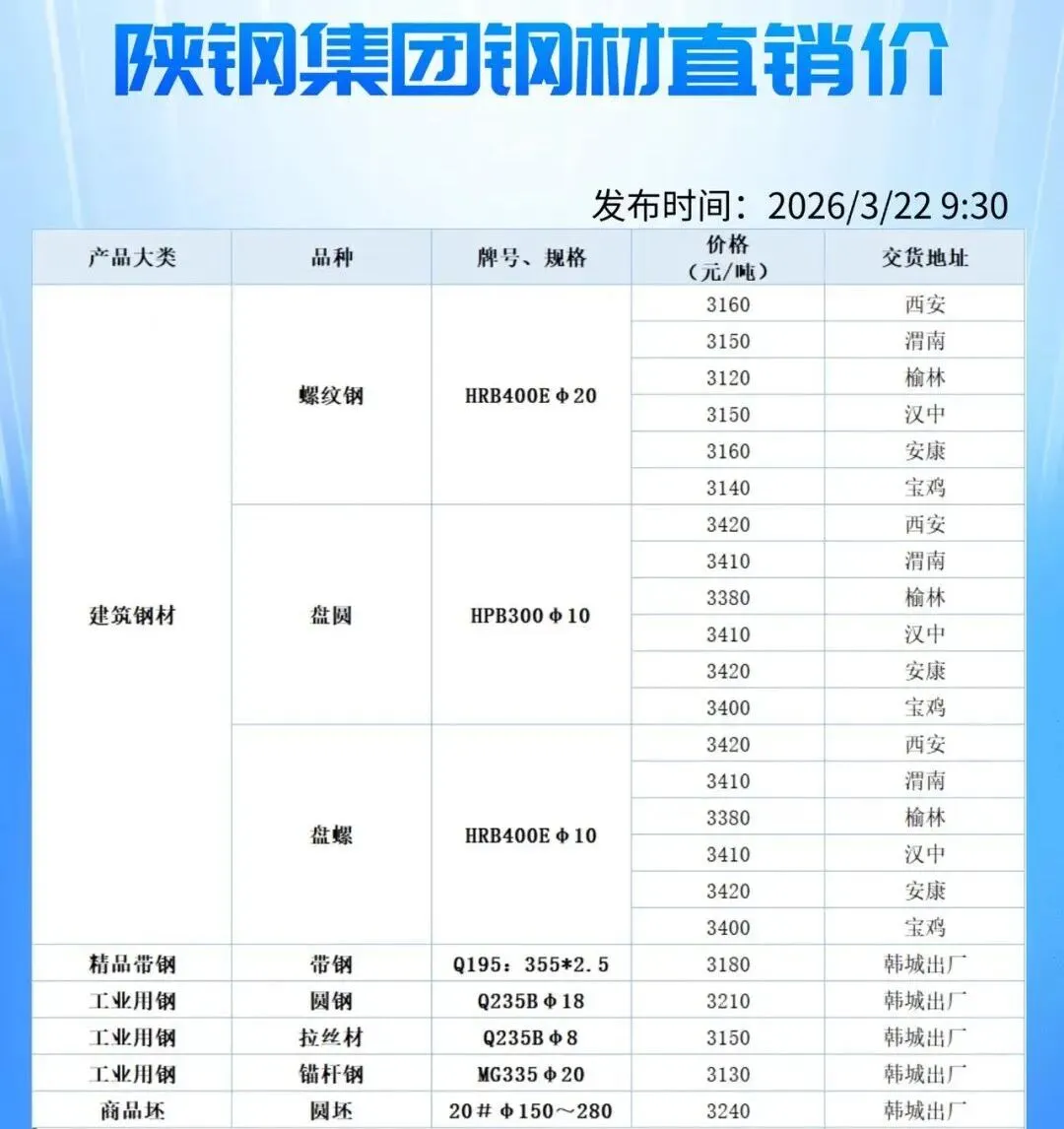 3月21日, 永钢对部分产品出厂价格进行调整,具体调整情况如下: 1、螺纹钢维持上期基价不调整,现Φ10mm HRB400执行价格为3610元/吨,Φ12mm HRB400执行价格为3550元/吨,Φ14mm HRB400执行价格为3480元/吨,Φ16mm HRB400执行价格为3480元/吨,Φ18mm HRB400执行价格为3450元/吨,Φ20mm HRB400执行价格为3480元/吨,Φ22mm HRB400执行价格为3500元/吨,Φ25mm HRB400执行价格为3530元/吨,Φ28mm HRB400执行价格为3530元/吨,Φ32mm HRB400执行价格为3530元/吨;Φ18mm HRB400E执行价格为3480元/吨,Φ18mm HRB500执行价格为3750元/吨,Φ18mm HRB500E执行价格为3780元/吨; 2、高线维持上期基价不调整,现Φ6mm HPB300执行价格为3850元/吨,Φ8mm HPB300执行价格为3700元/吨; 3、盘螺维持上期基价不调整,现Φ6mm HRB400执行价格为4000元/吨,Φ8mm HRB400执行价格为3700元/吨,Φ8mm HRB400E执行价格为3730元/吨; 4、5对3-2期螺纹补170元/吨、线盘补225元/吨;本期电子银行承兑月贴息利率一、二类银行1.22‰,省级城商行1.32‰,三、四类银行1.52‰。