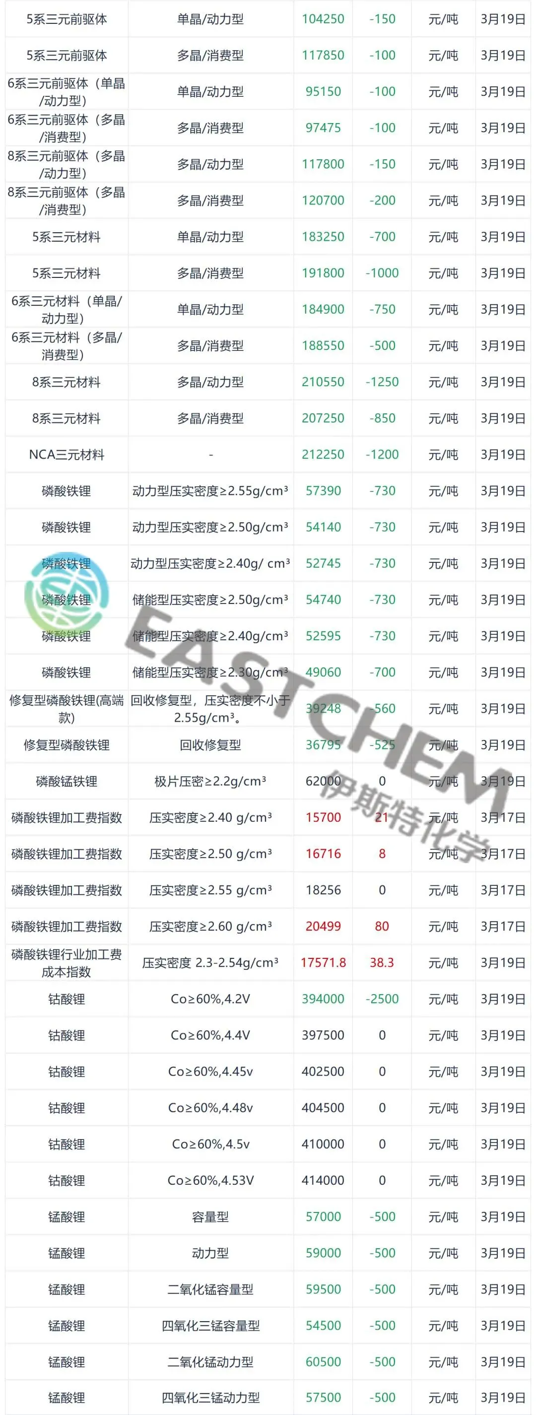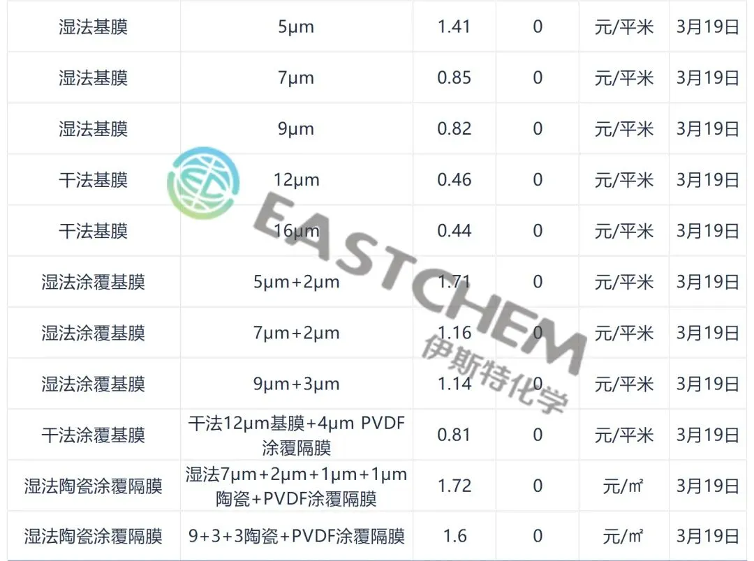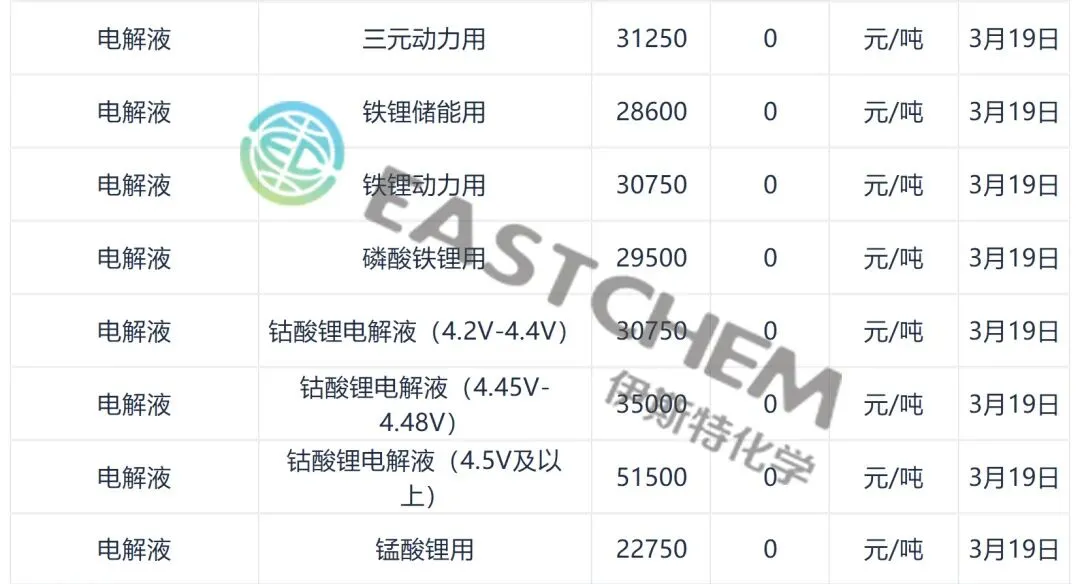 锂电池及主要材料价格回顾(3.19)