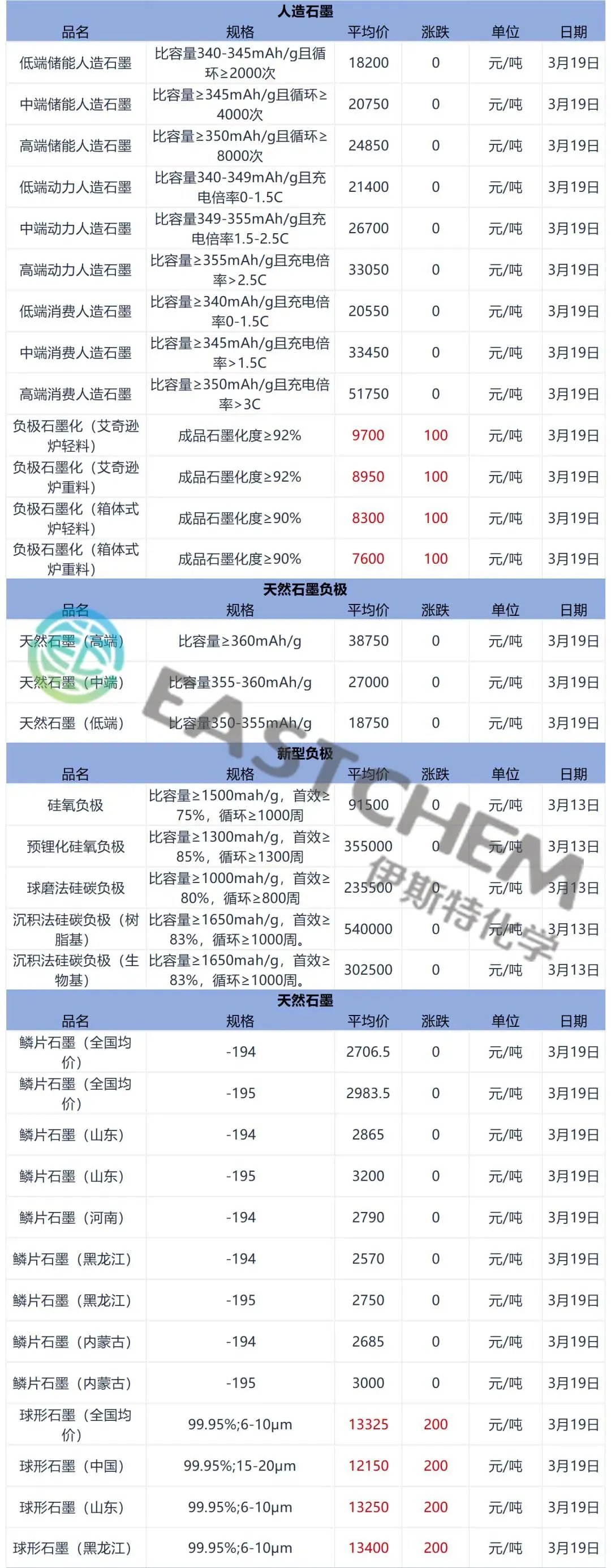 【负极材料】人造石墨负极价格暂稳,需求回暖叠加成本上行,后续有上涨预期;天然石墨负极价格维持僵持,成本支撑与供需宽松并存,短期仍以稳定为主。