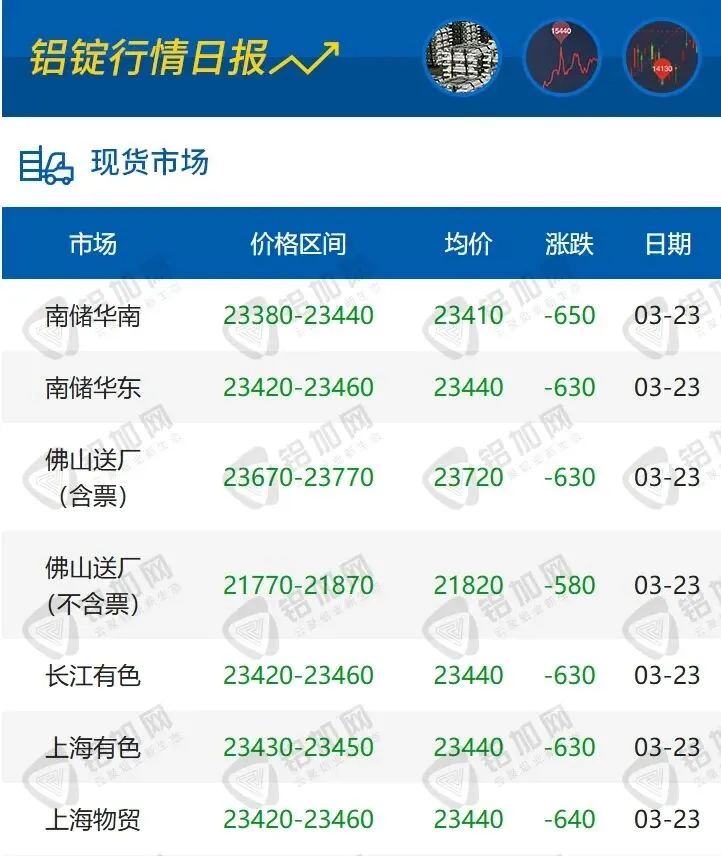 今日铝锭市场行情动态:2026 年 3 月 23 日南海灵通铝锭价行情更新!