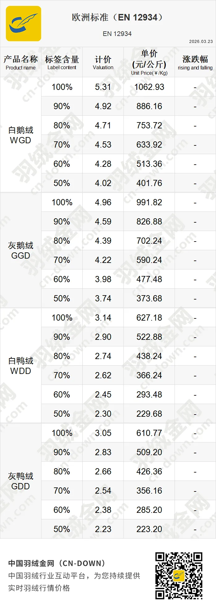 创建于2007年,逐步发展成为全球羽绒行情的风向标,是一家专注于羽绒行情价格发布的权威行业平台。作为中国羽绒行业的重要信息枢纽,羽绒金网持续提供实时精准的羽绒价格走势、市场行情分析和行业资讯为核心服务,覆盖羽绒产业链上下游的企业用户。