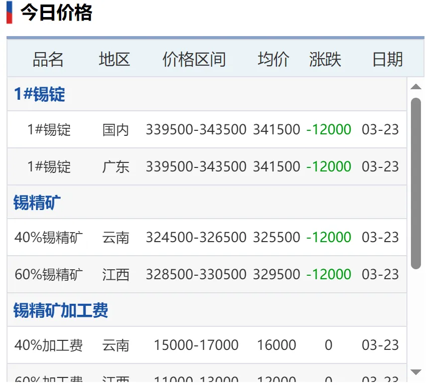 锡巨大调整,一直在下降,之前涨太多,已经降到触及去年12月份价格。