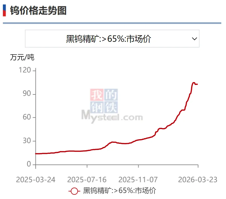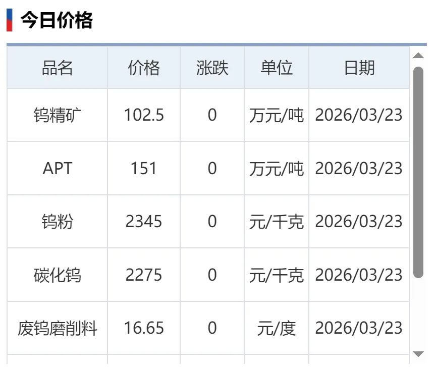 今日钨价行情:2026年3月23日国内现货持稳 回收端承压走弱 国际钨价高位坚挺