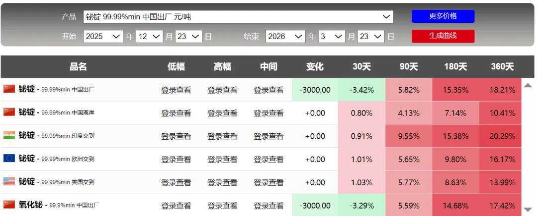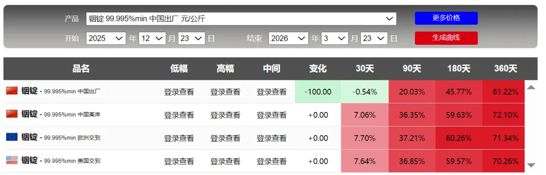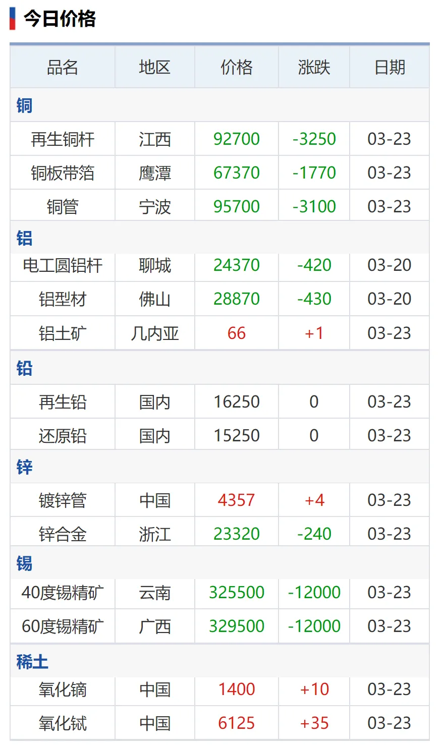美国、日本和欧洲标准行情(2026.3.23) Standard Price in the US,Japan and Europe