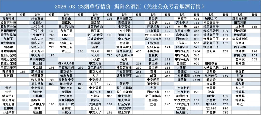 名酒汇03.23行情报价