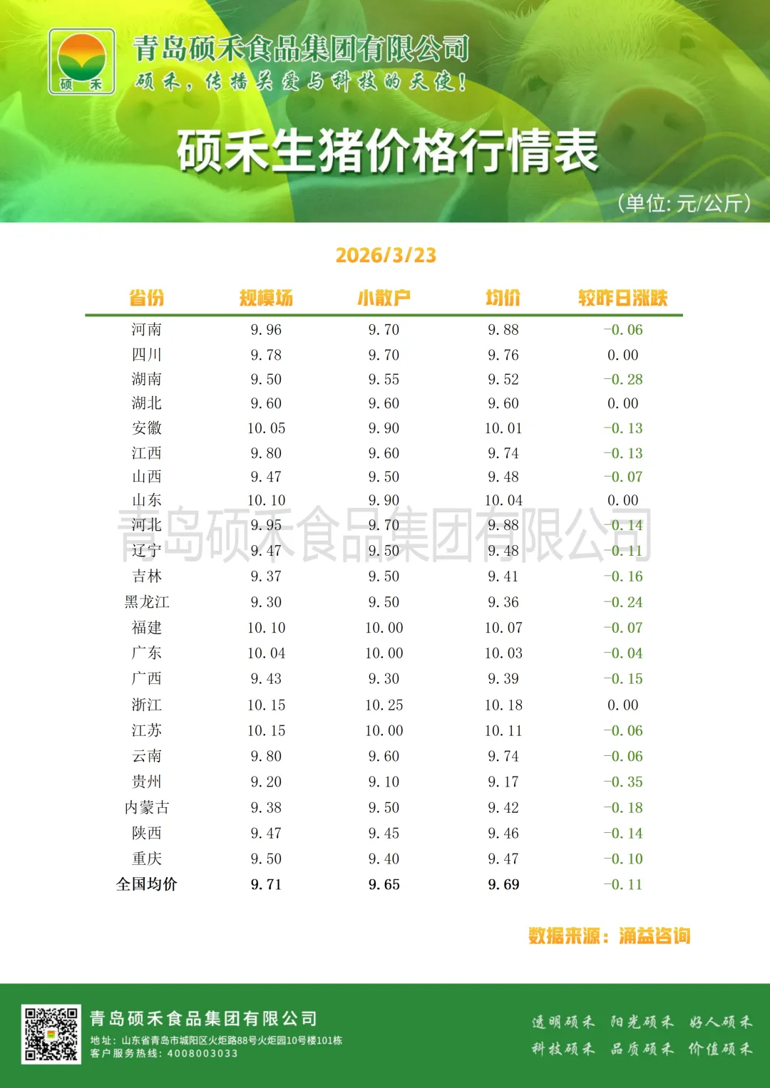 【生猪行情】3.23硕禾生猪价格行情