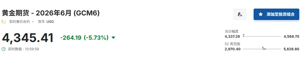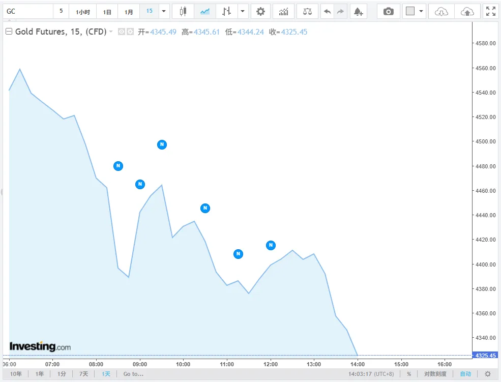 - 国际金价(伦敦金现) :$4,319.16/盎司,日跌$145.43(-3.26%)