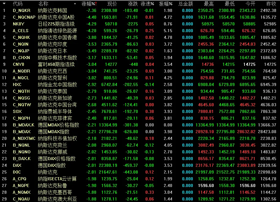 外围市场也是跌的稀烂,韩国和日本跌的最凶,跟国内大A真是有的一拼!
