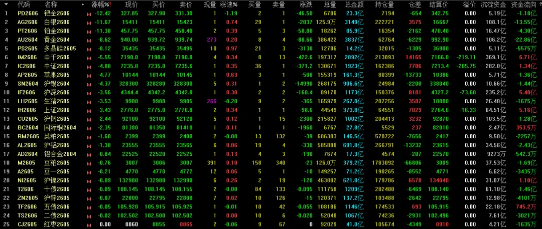 涨的品种有哪些,跌的品种有哪些,那对于当天能做多和做空的品种就大致心里有数了。