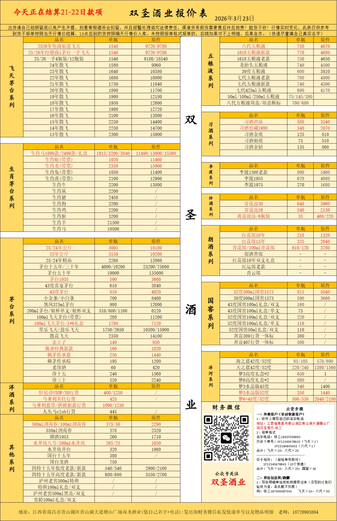 即日起,寄存超过15天的,出货时茅台+5、五粮液+2、飞天原件+15、八代原件+10、国窖+2.需要寄存的直接跟财务说明即可。