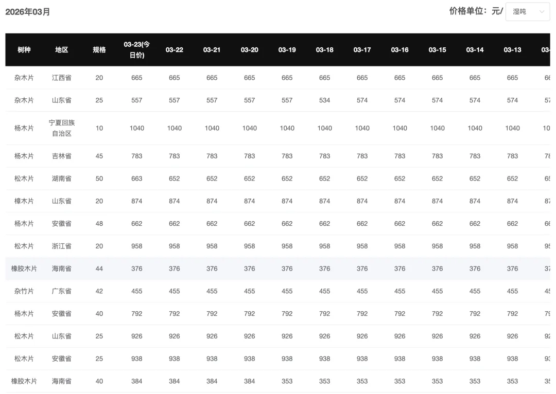 今日木片价格偏强运行,出货量具有一定波动。其中采木网平台合作报价商——山东德州地区客户杨木片(净片,含水率50%左右)报价780元/吨;贵州黔西南地区客户杂木片(净片,含水率50%左右)报价400元/吨;河南南阳地区客户松木片(净片,含水率45%左右)报价610元/吨。目前正处于传统需求“旺季“阶段。