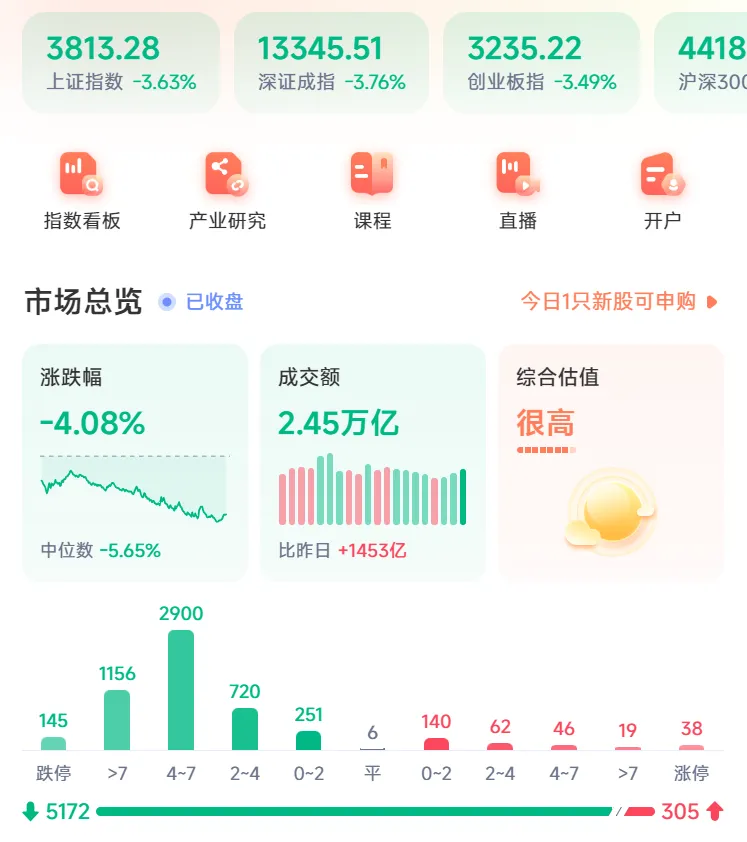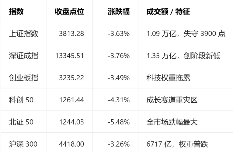,指数全线重挫、板块几乎全绿、赚钱效应冰封,仅