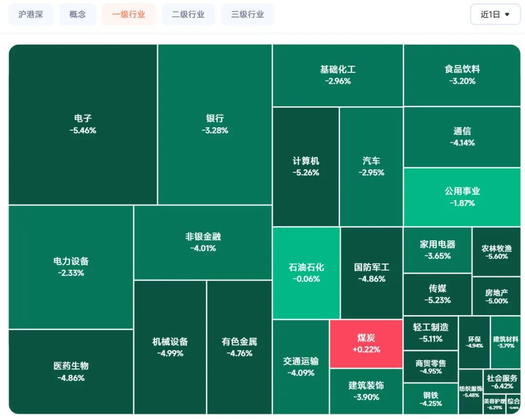 1. 唯一红盘:煤炭 / 高股息(防御)