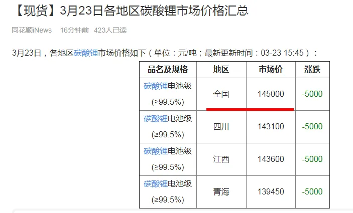 现货市场,全国平均价格较上一日下跌5000元,市场报价145000元,现货贴水。