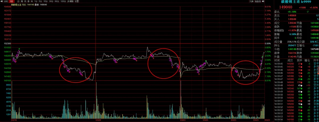 可是,反转也来得有点意外,下午盘2:48分,多头发力,一举收复失地,收盘还上涨了1.02%。价格从14万元到14.9万元,多头价差收益也是很可观的啊。
