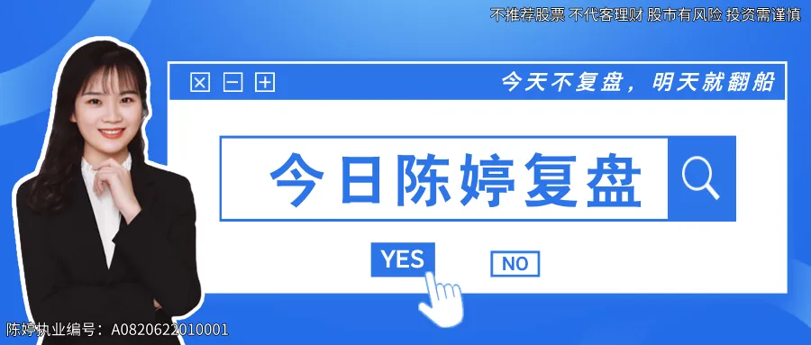 每日复盘是陈婷团队基于当个交易日盘面走势的分析和解读,目的是帮助学员们更好地将所学内容落地到实战。复盘内容仅供参考,不构成买卖建议,股市有风险,投资需谨慎,文章观点不作为投资建议,据此操作风险自担。
