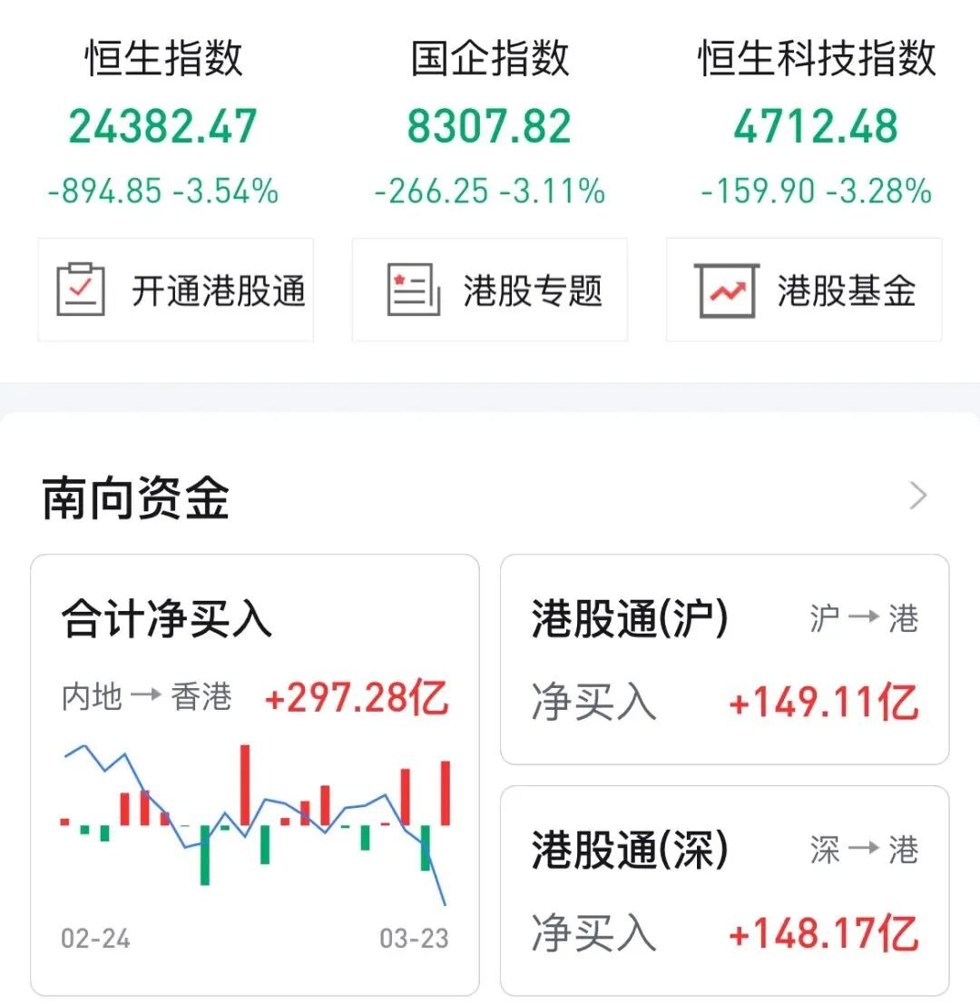 • 全球恐慌共振,港股全线重挫、放量下跌,三大指数均跌超3%