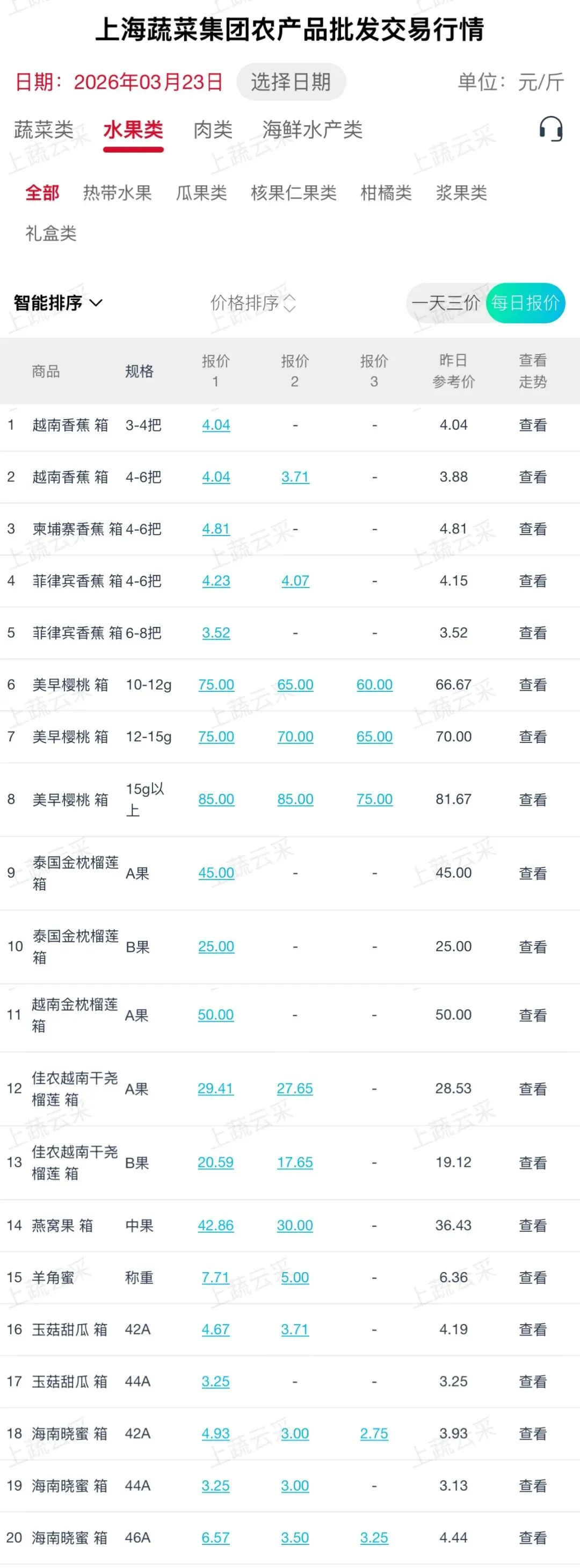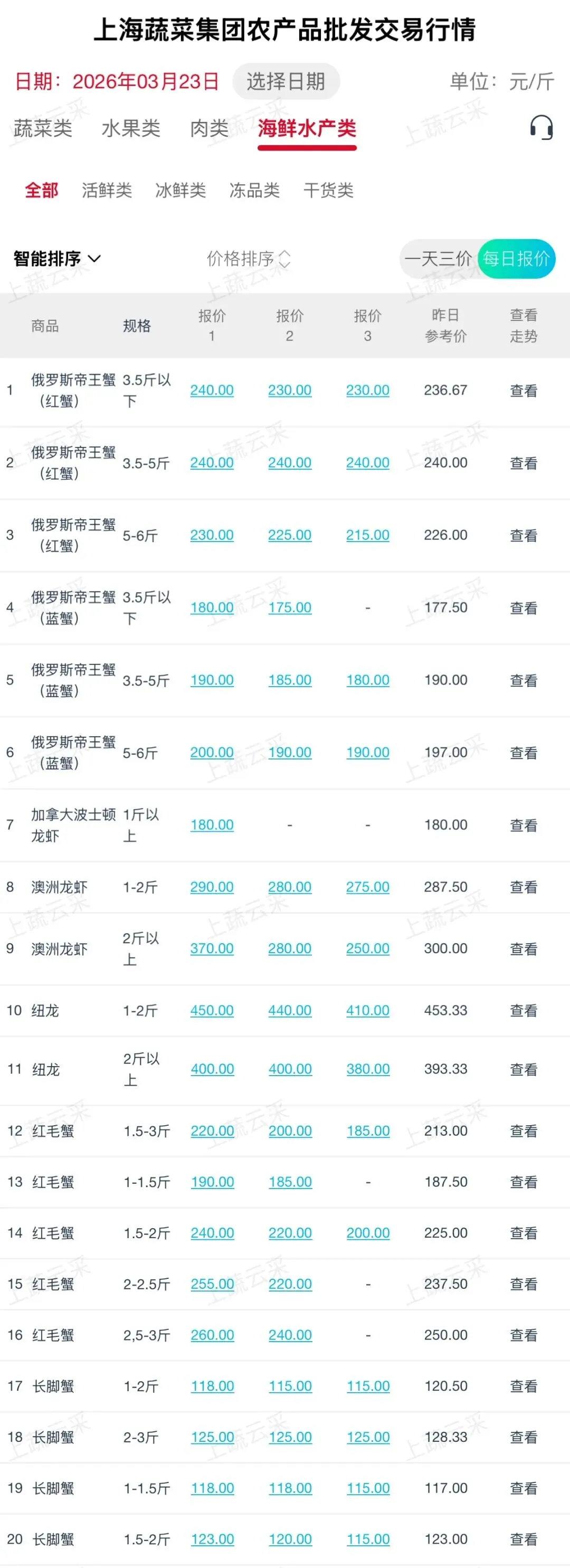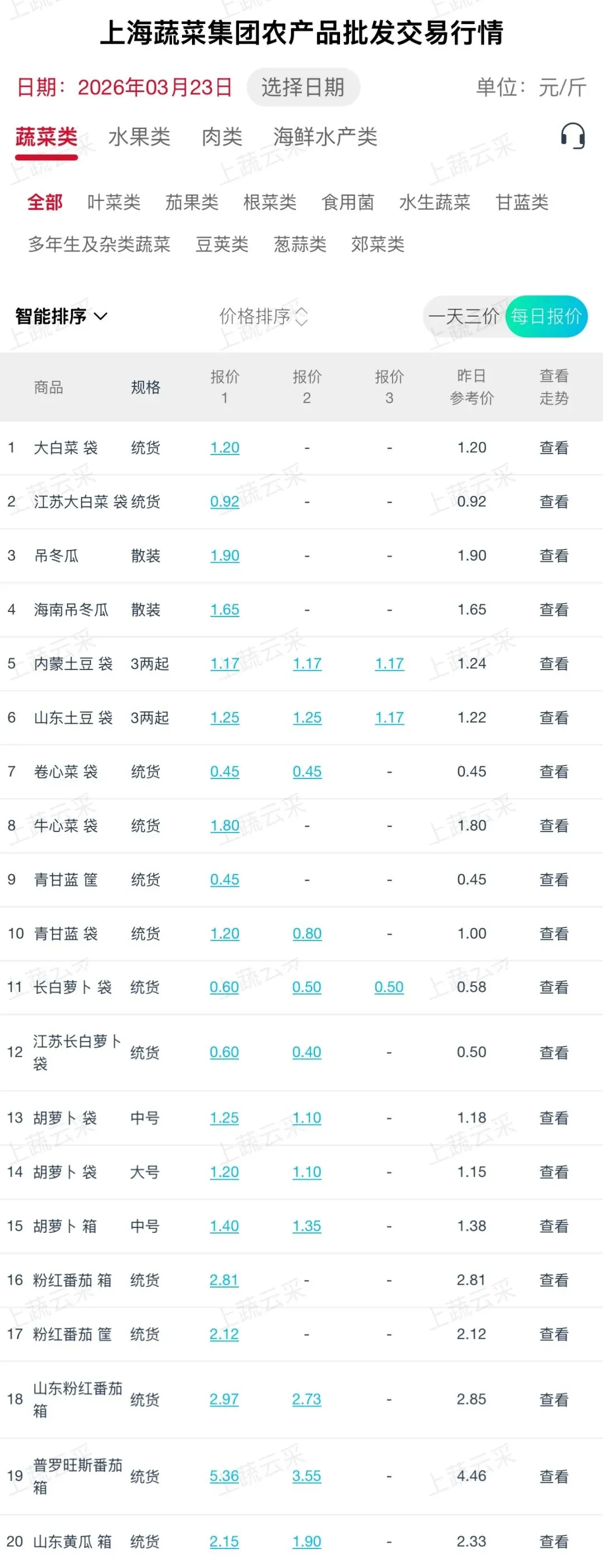 蔬菜、水果、肉、海鲜水产等更多品类交易行情