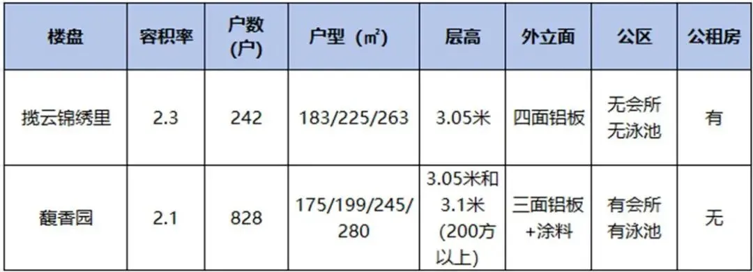 去年年中,揽云业主将价格下调,两者挂牌价已经接近。天平之所以向一头倾斜,馥香园体量大,公区和园林的层次感丰富,拥有1400方的下沉会所和泳池,对部分改善客群是有面子的事。以及,无公租无自持的纯粹居住环境,也让馥香园赢得了分数。