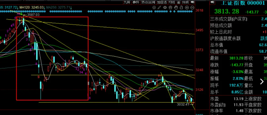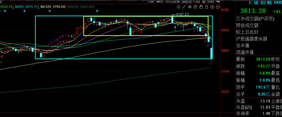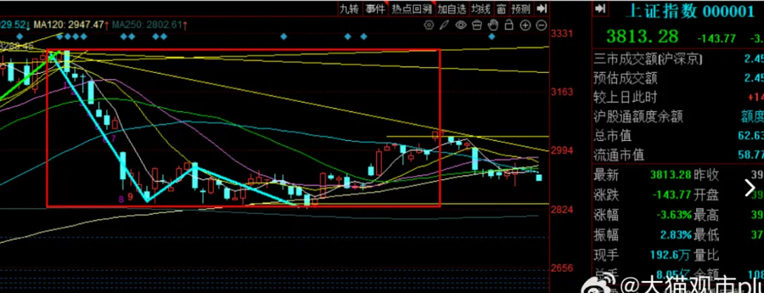 沪指,3800都能破掉,太疯狂了。去年10月11月的平台到了。另外沪指有400点规律,也就是一波猛烈的回调,一般集中在400点左右,有时候接近500点(例如22年4月上海口罩危机时期),其余时候不论2020年2月口罩危机,2024年1月流动性危机,2025年4月7日灌水爆发。