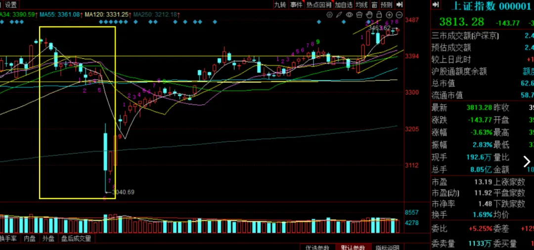 2025年4月7日,毛衣大战,跌400点,全部收复。