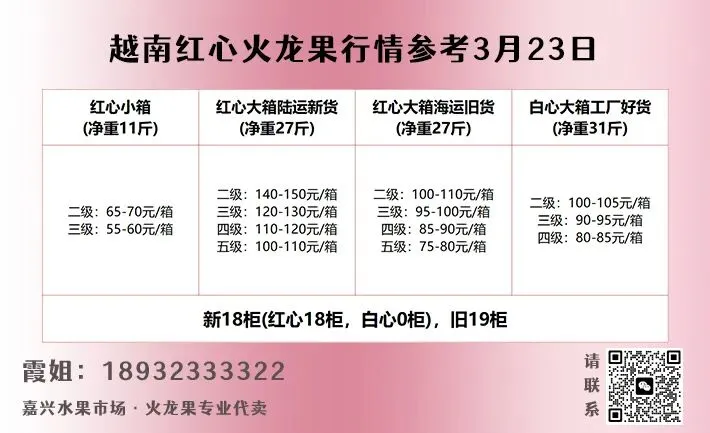 >3月23日华东水果市场榴莲、火龙果行情参考