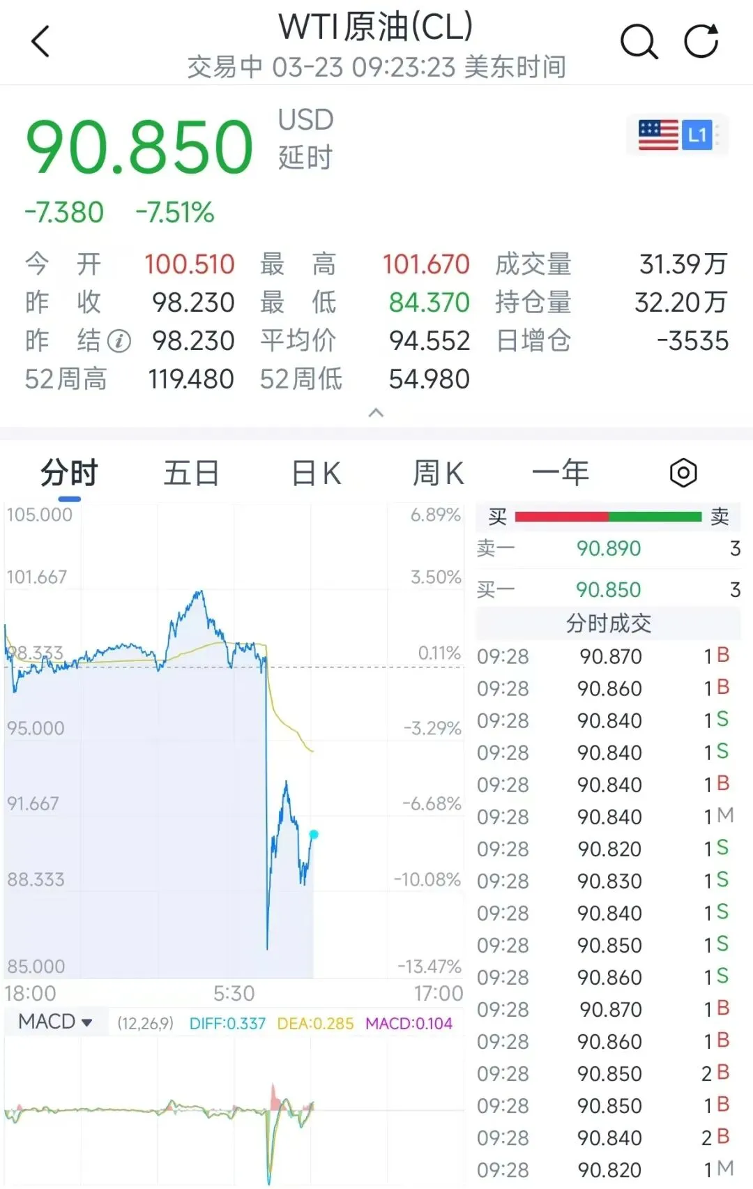 原油开盘后极速下跌: