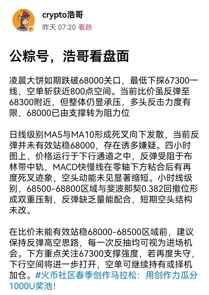从日线级别来看,虽然昨晚出现大幅拉升,但价格在触及71789后迅速回落,收出长上影线,显示高位抛压明显。当前价格回调至70300附近,该位置处于MA5均线边缘,若无法有效站稳,短期或有进一步回踩需求。四小时图上,MACD快慢线虽仍处于零轴上方,但多头动能柱已开始缩短,KDJ指标高位死叉向下发散,显示上涨动能有所衰竭。小时线级别,价格在冲高后连续收出阴线,反弹乏力,70300一线若失守,将考验下方69800-69600区域的支撑强度。