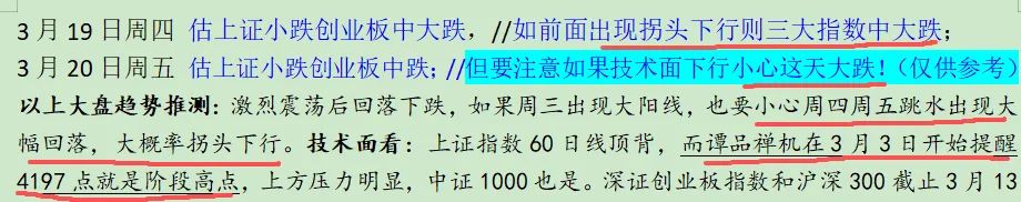 谭品禅机在3月3日就提醒4197点是阶段高点,在3月18日就明确提醒接下来要小心大阴线,如今都已经验证。