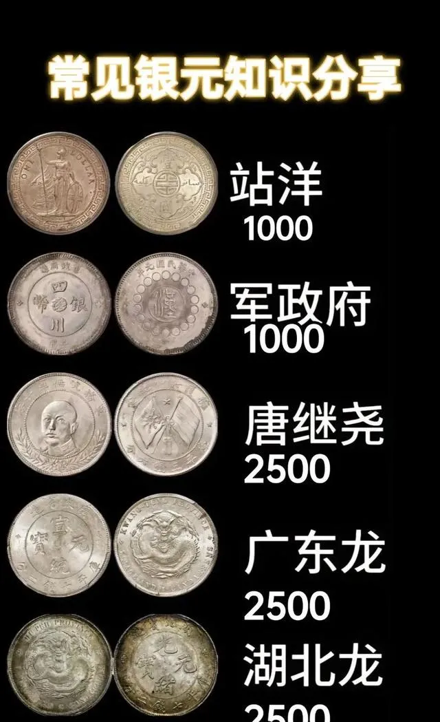 下面这些像站洋、军政府,外行不少人分不太清,俩都是一千开价,唐继尧头像的银元,辨识度强,价格倒是二千五上下,一到南方市场总能碰到认识他的老行家,尤其云南、广西那块,姓唐的银元故事多,妥妥的地方代表,家里老人还会说“小时候屋里那几枚,关键时刻能顶事”,如今门槛不高,新手练眼的第一步就靠它。