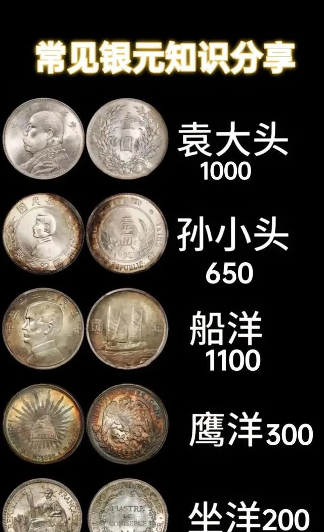这个人像是孙小头,币外一圈中英文,正中是“开国纪念币”字样,反面花饰和币值,600-2000元,价差全看成色和边齿,摸起来旧币细腻,拍豆腐的声音,小时候爸妈去赶集,总说孙小头买卖稳,好出手,“这年头手头有点硬货,啥事也不慌”,船洋也一并提,轮廓分明,正面人物,背面大帆船,广东市场上尤爱,说船洋“见钱快”,闲鱼、小红书也流行用它晒家底,能卖到一千一、两千不带眨眼。