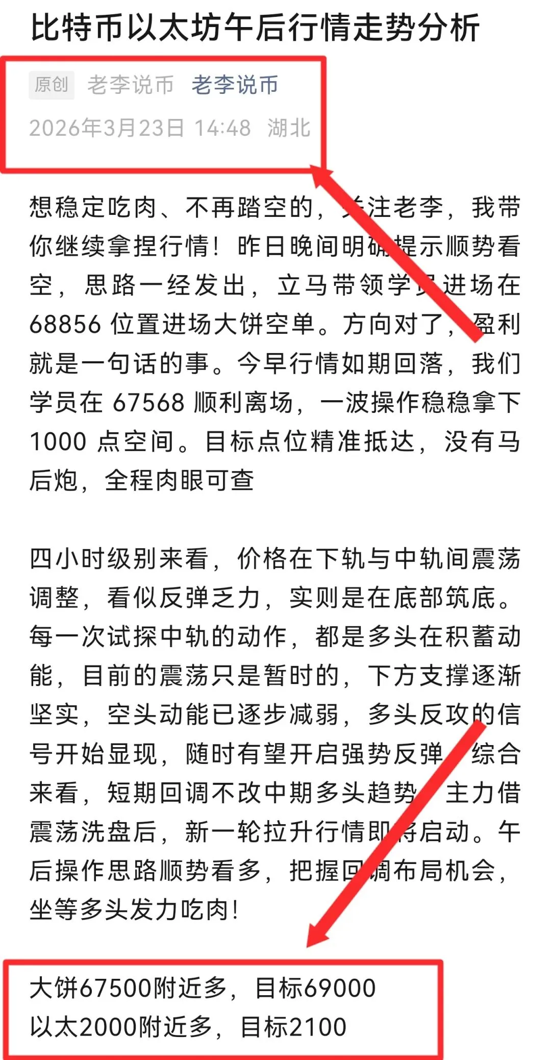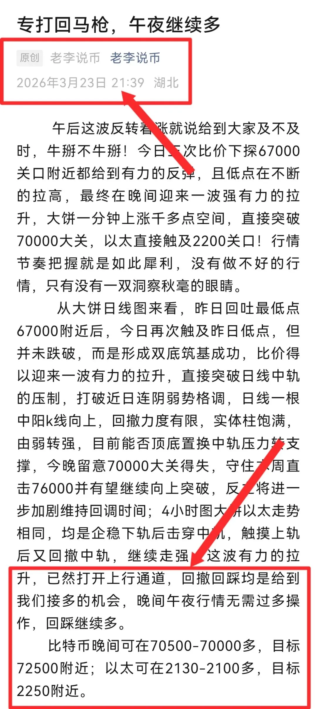 看时间,看点位,进入晚间行情第一波多头的冲势没吃到朋友没关系,再次第一时间提醒大家,追涨杀跌,我们继续多,第二波大饼再次给到一千多点空间,相信只要艮着老李的策略思路去做的朋友们,这波莉润也是能美美的吃到!