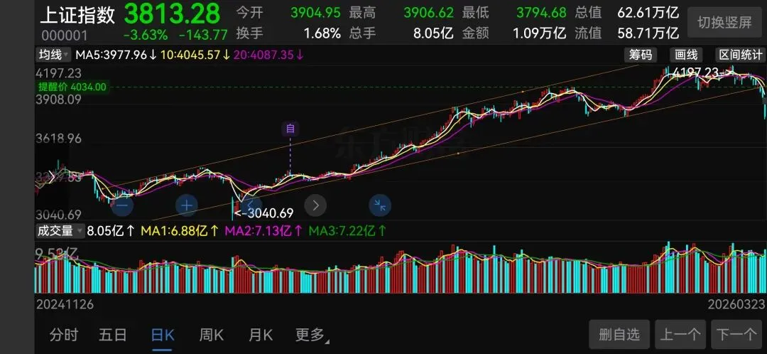 日线级别可能还会去碰一下年线,大概3730点,今天如果开盘就下杀,那很大可能会V回来,收根长下引线