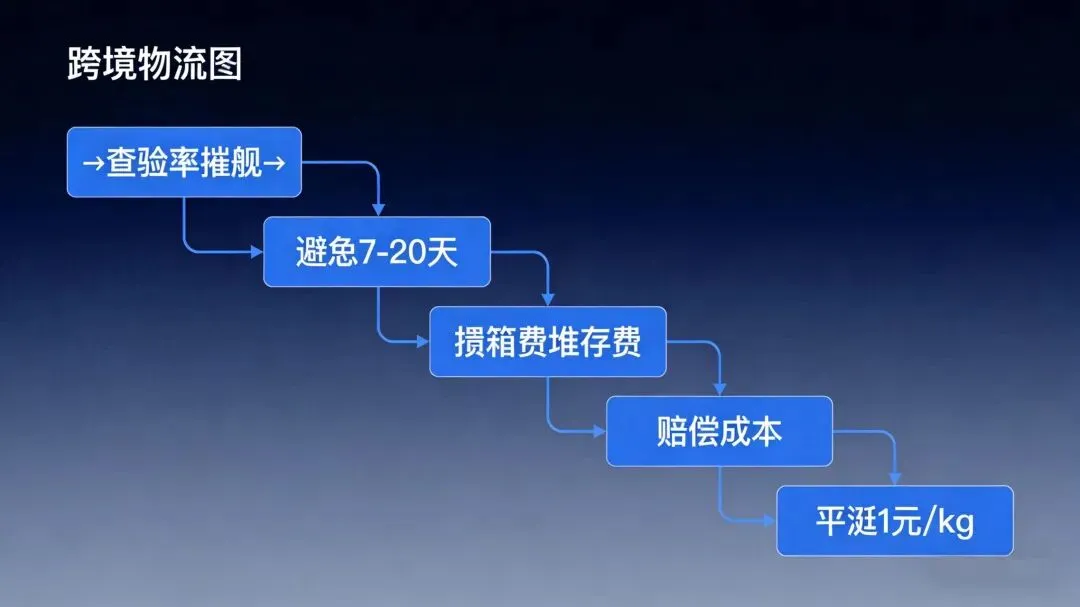 3. 滞箱+堆存+改船+二次清关+风险赔付,平摊到每公斤≈1元