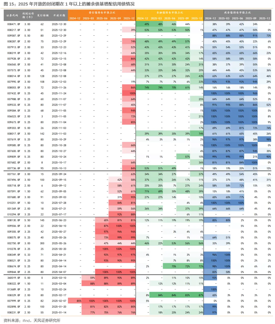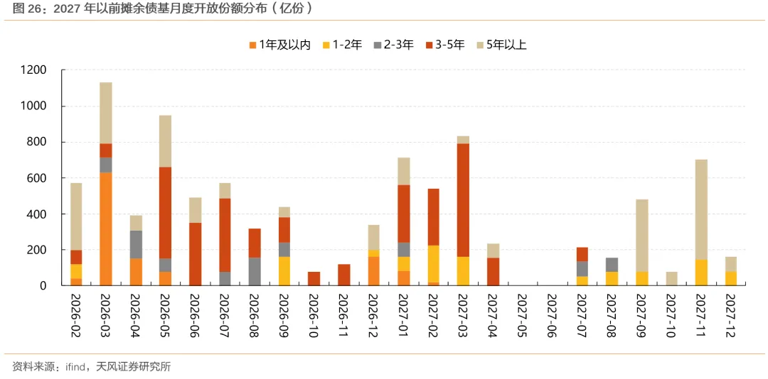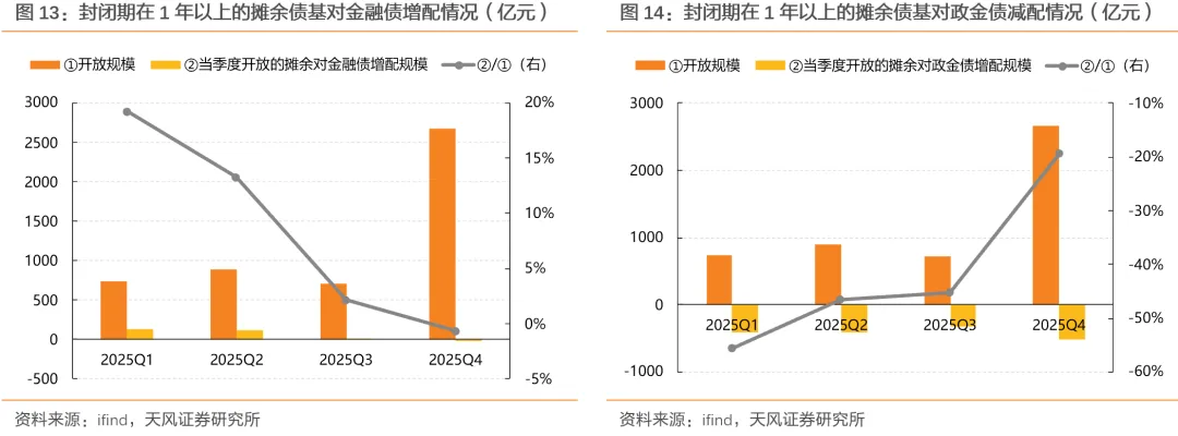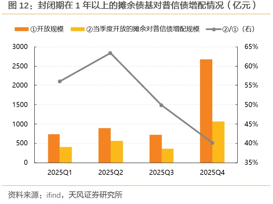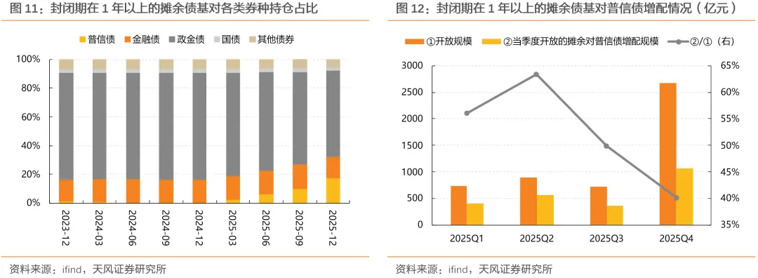 此外,2025年四季度进入开放期、且封闭期在1年以上的摊余债基季末资产规模合计约2600+亿元,对普信债持仓市值环比增加1068亿元,占其规模的40%;