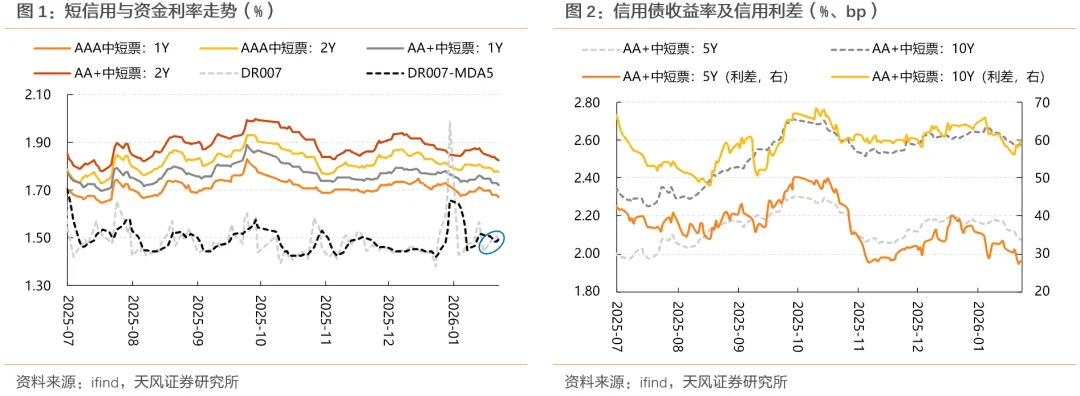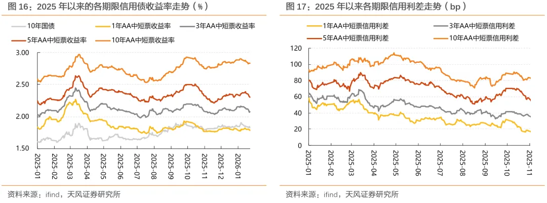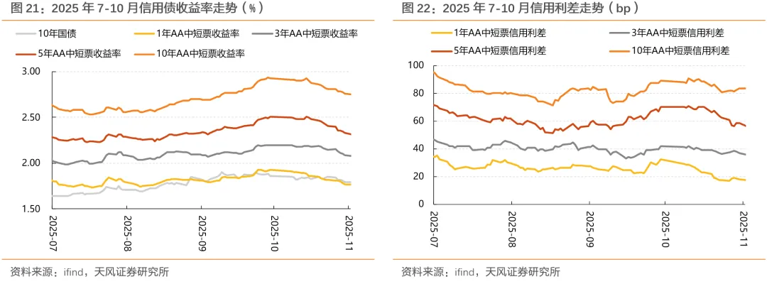 此阶段信用跟随利率债调整,整体呈现由短及长的节奏特征: