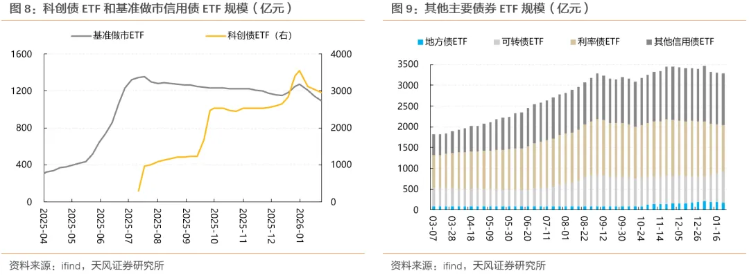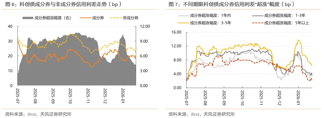 (6)2026年以来。科创债成分券相较于非成分券持续“超跌”,或系受相关科创债ETF规模持续回落影响,期间或伴随有卖券需求。