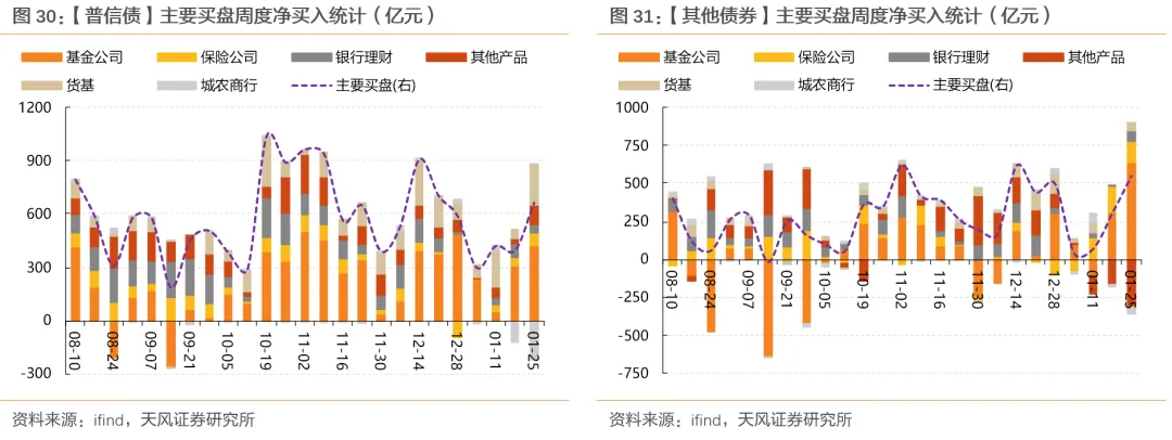 注:26年之后现券的“其他”债券统计口径由之此前按照到期日统计,改为优先按照行权日统计;分期限买入力度呈现中受前后统计口径差异,或和前期不可比。