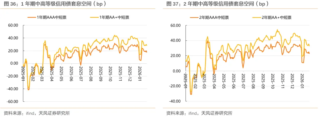 近2周,短信用套息空间受资金面收紧影响有所收窄,但仍处在2025年以来的相对高位。
