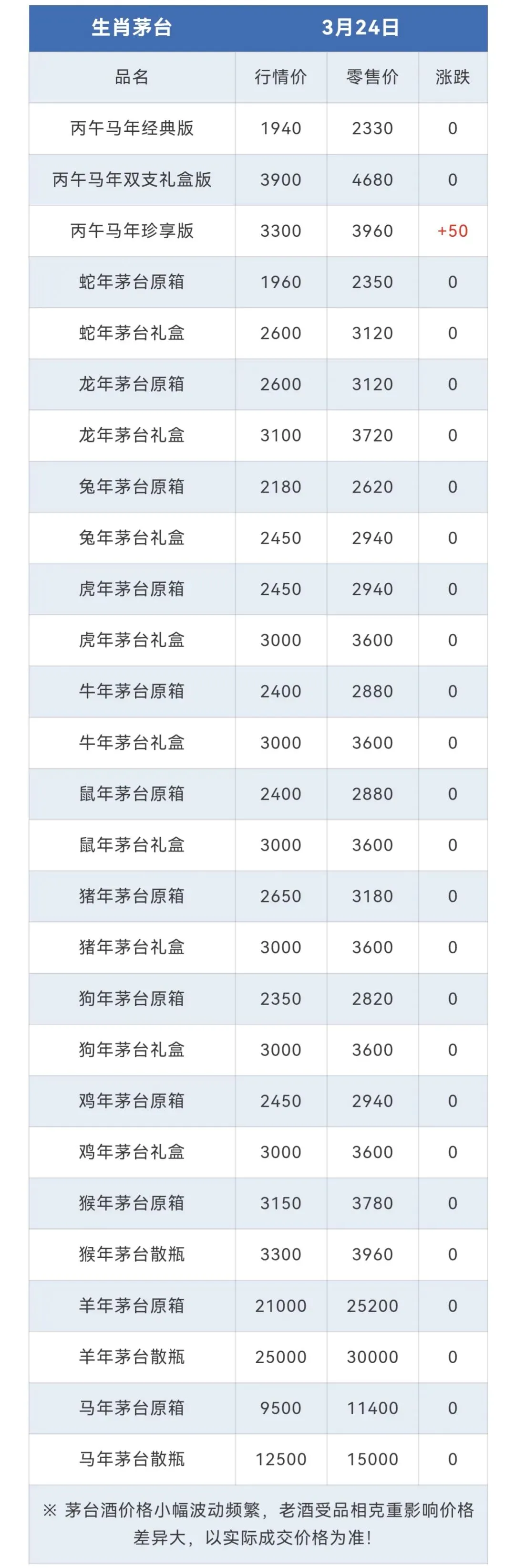 ※行情价:酒商调货价,不考虑物流运输人工成本,每个地区调货价有几十块浮动属正常现象。