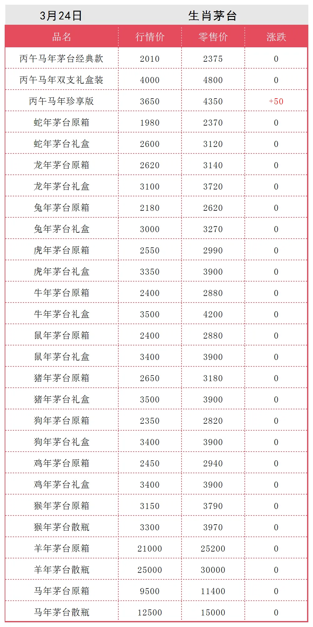 3月24日名酒行情价