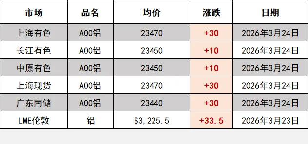 3月24日今日铝市场最新报价来了,