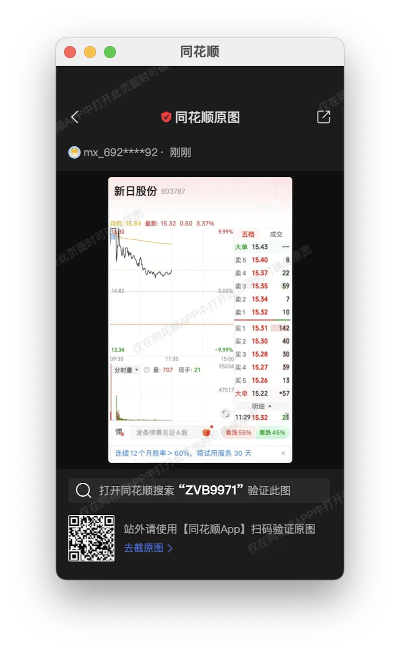 今天市场全线反弹,熟悉我们策略的朋友应该比较清楚,往往这种行情下,我们抓板成功率都不高!今天到目前还未收获一只首板!反而昨天下跌行情稳稳的收获三只首板!今天两只冲涨停,已经出掉!昨天给大家讲的杀掉一波恐慌盘后,市场会迎来一波小反弹!今天确实反弹了!不过大家也不高兴的太早,国际局势不稳定因素的存在,大家还是小心为妙!仓位太重仓的朋友,不妨趁今天反弹可以适当减仓来应对不确实的因素!喜欢我们文章的朋友可以点上方蓝色字星标一下!(可看下方同花顺原图验证)今天目前没有回马枪提醒,如果下午有提醒放评论区!大家可以继续关注验证!(每日预警标的分享包括:首板-回马枪-涨停打开低吸,预警完整标的见文中)