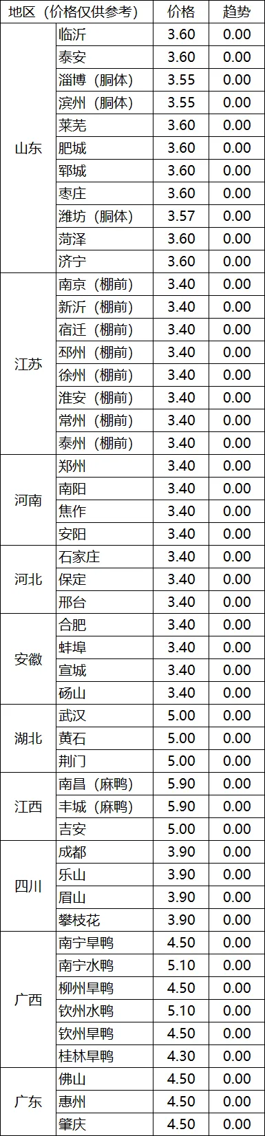 辽阳地区肉毛鸡棚前收购价3.60-3.70元/斤,与23日相比持平;