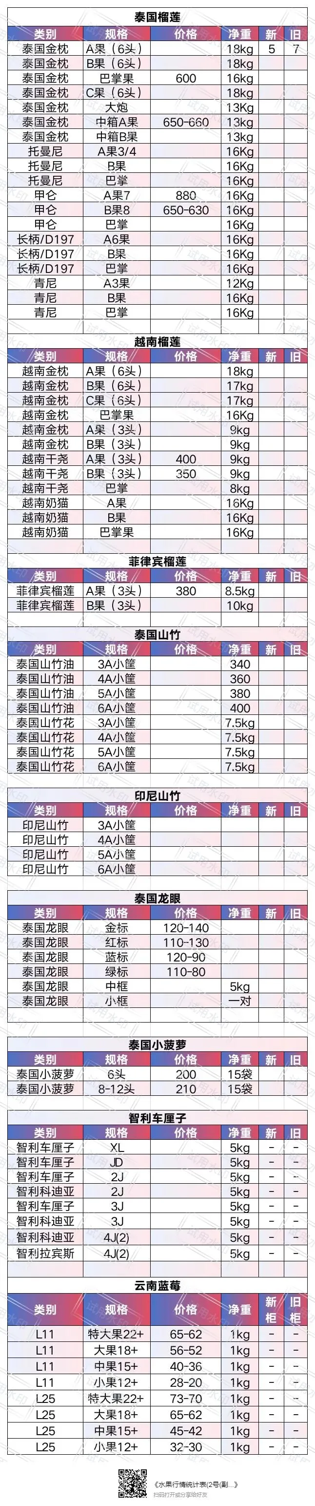 --泰国货这段时间托曼尼和甲仑陆续上市目前货物增多。预计4月后-6月东部金枕头大产季来临。