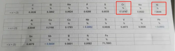 一出现质量问题第一反应就测成分,一测成分就是元素问题。304的8镍18铬已经很多人不敢打了,其他成分超标也吵个不停。没办法,谁让304有国标呢?”